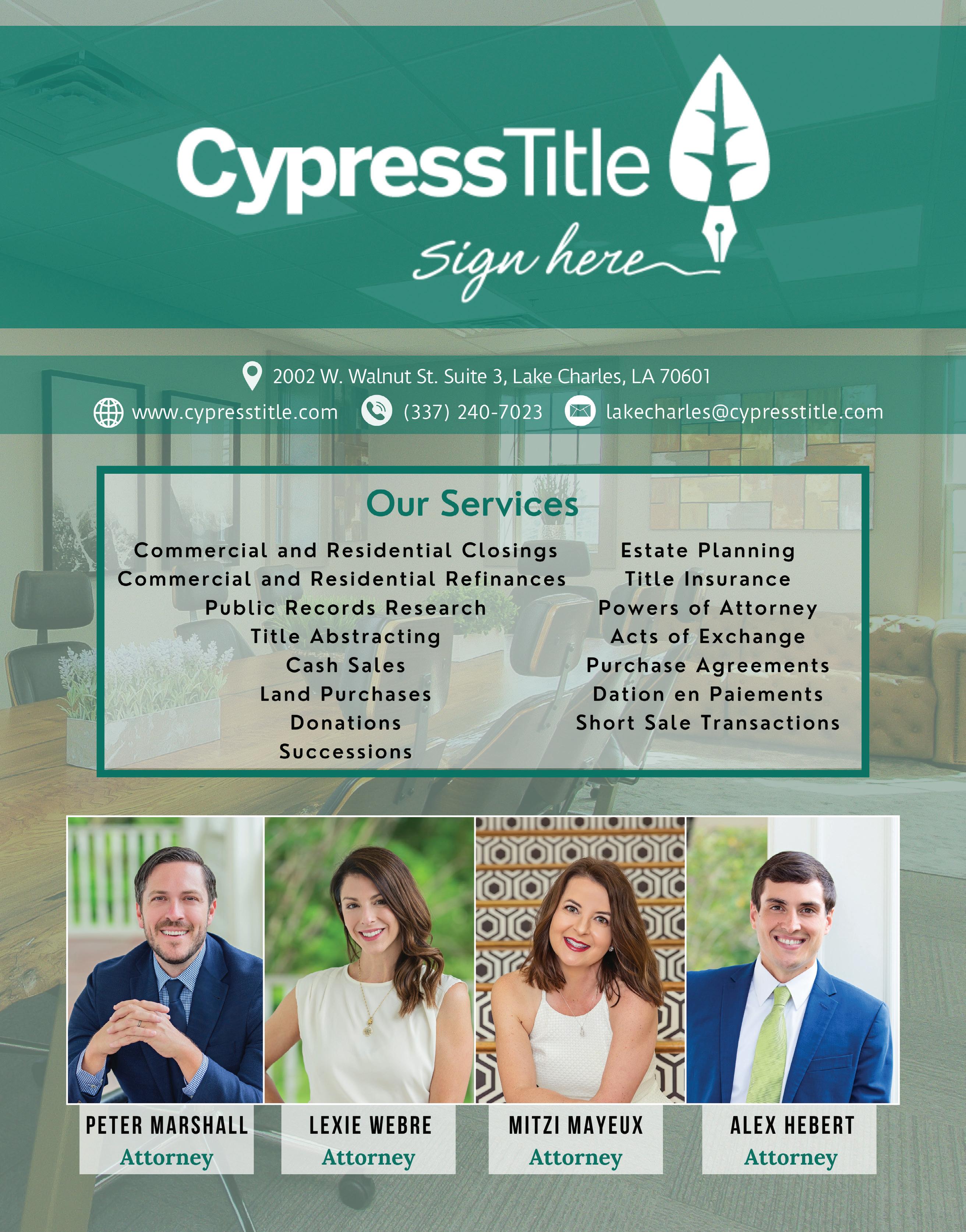 Published for the Real Estate Professionals of Southwest Louisiana by Caple Communications LLC E-mail: info@caplecommunications.com (337) 436-4355
