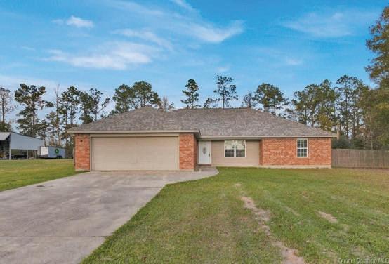 Adorable three bed two bath home on an oversized lot in Moss Bluff! The spacious living room features tray ceilings, a wood burning fireplace, and lots of natural light. The kitchen has ample space for storage with the custom cabinets. The master bedroom will not disappoint on space. Enjoy your covered back patio with private French door located in the master bedroom. The exterior offers low maintenance upkeep with brick and vinyl siding. This property has an additional single vehicle garage/workshop with power inside.