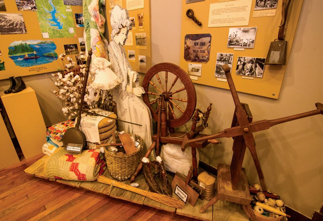 One of the first displays visitors encounter pays tribute to noteworthy people who have ties to Montgomery County. Students who tour the museum often recognize the names of Isaac Conroe, Peter Willis, and Margaret Montgomery (who married Owen Shannon). Nearby, an exhibit displays memorabilia donated by Pat Spackey, a descendant of Dr. Charles Stewart, the Montgomery County resident who designed the Texas flag.