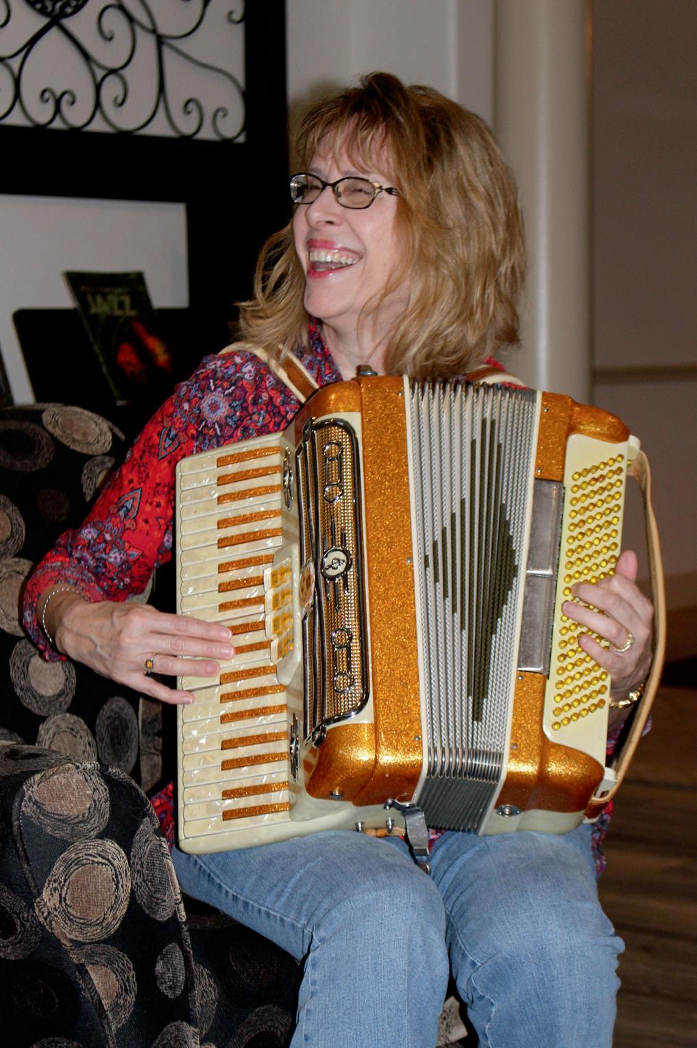 is the pianist for the church’s 8 a.m. service. She also sometimes plays lively tunes on her accordion at small-group get-togethers.