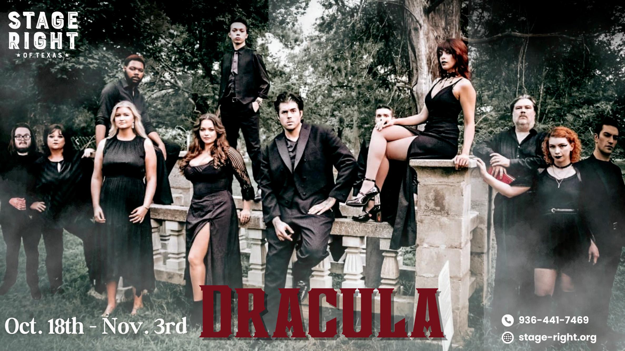 October 18 through November 3. “I think I might have outdone myself,” she says with a smile. She hand-picked Austin to play the role after seeing his recent performance as Gaston in Beauty and the Beast. She is certain his towering height and large build will make him a memorable Dracula. She cast her son Ian Montez in the role of Harker. Ian participated in his first Stage Right production when he was six years old; he earned a part in Cheaper by the Dozen when he showed up to audition in a 1930s costume.