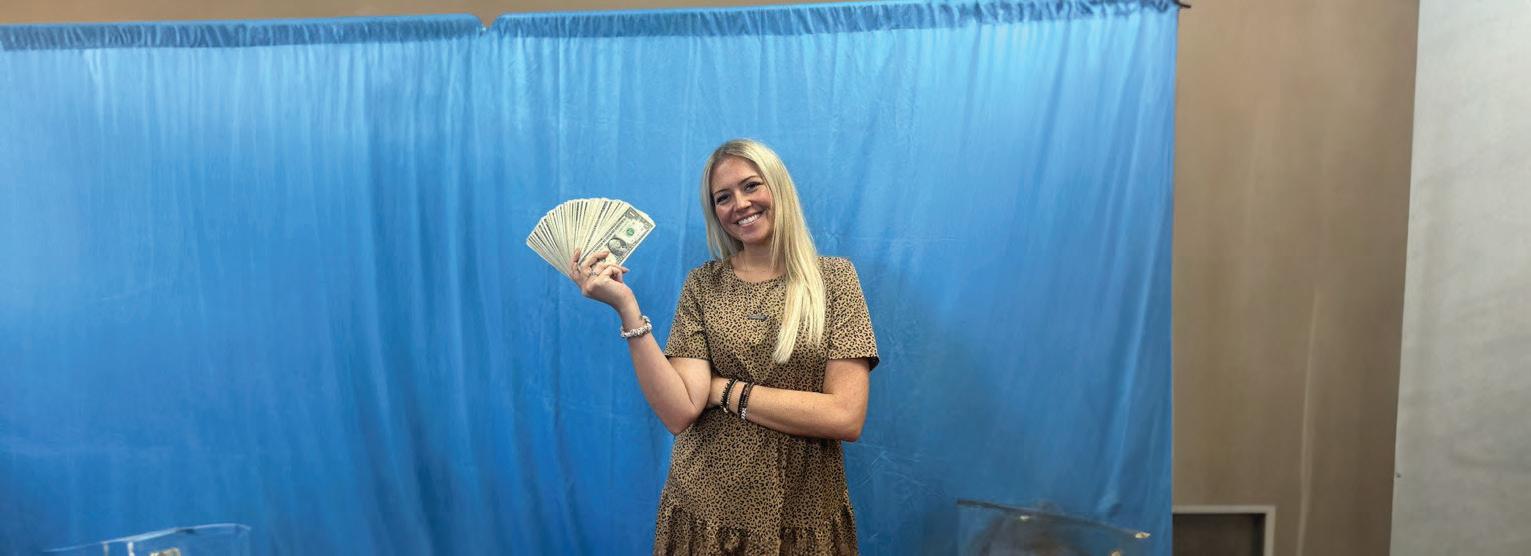 800 to the right divided by cafeteria personnel passing out burritos standing on the country-western stage