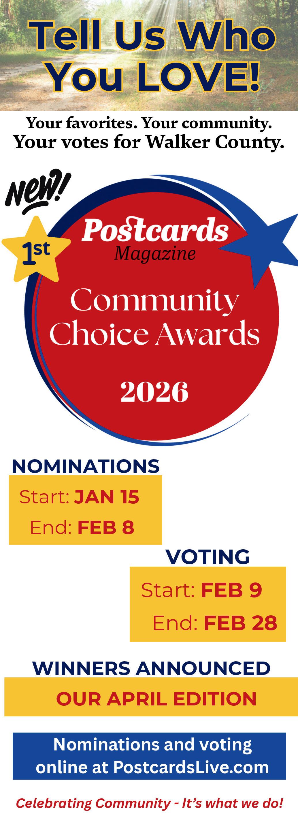 That question is what inspired something brand new for us—our very first Postcards Community Choice Awards.