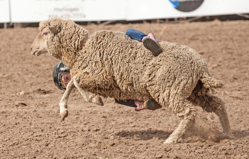 Mutton bustin is an event held at rodeos similar to bull riding or bronc riding, in which children ride or race sheep. In the event, a sheep is held still, either in a small chute or by an adult handler while a child is placed on top in a riding position. Once the child is seated atop the sheep, the sheep is released and usually starts to run in an attempt to get the child off. Often small prizes or ribbons are given out to the children who can stay on the longest. There are no set rules for mutton busting, no national organization, and most events are organized at the local level. The vast majority of children participating in the event fall off in less than 8 seconds. Age, height and weight restrictions on participants generally prevent injuries to the sheep, and implements such as spurs are banned from use. The practice has been documented as having been introduced to the National Western Stock Show at least by the 1980s when an event was sponsored by Nancy Stockdale Cervi, a former rodeo queen. At that event, children ages five to seven who weighed less than 55 pounds could apply, and ultimately seven contestants were selected to each ride a sheep for six seconds. There are no statistics about the popularity of the sport, but anecdotal reports suggest thousands of children participate in such events every year in the U.S. Supporters consider the event both entertaining and a way to introduce young children to the adult rodeo “rough stock” riding events of bullriding, saddle bronc and bareback riding.
