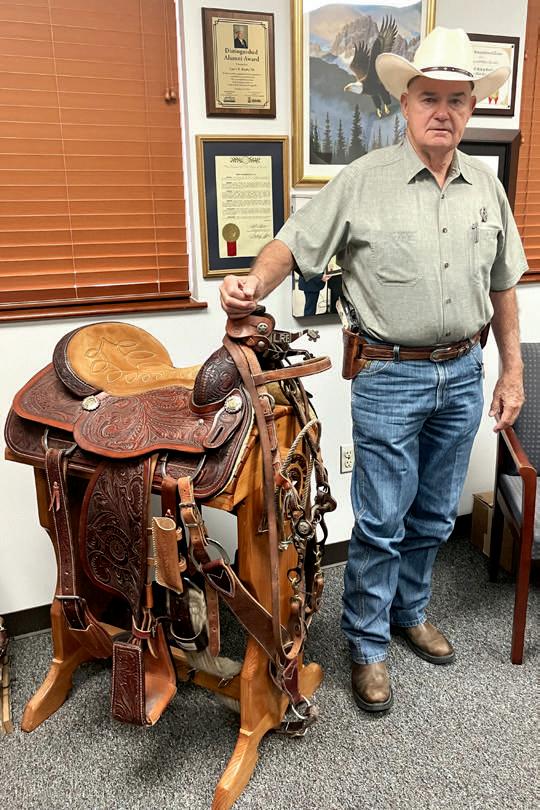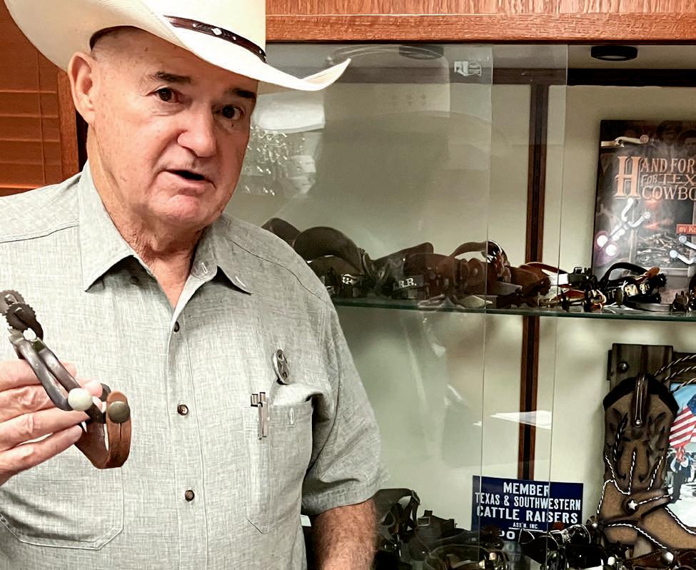 Top: Larry Busby was a Peace Officers Rodeo Association state champion in 1987. Contributed photo. Middle: Sheriff Larry Busby shows off his collection of spurs. Photo by Dr. Janet Cunningham.
