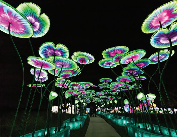 On the zodiac calendar, 2024 is the Year of the Dragon, so Radiant Nature features a massive illuminated dragon nearly the length of a football field. Among the other highlights and Instagrammable visuals set to delight guests are a 50-foot tall pagoda; beautiful larger-thanlife flowers and plants included to represent the Garden’s living collections; lighted swings, seesaws, and other interactive elements; and more.