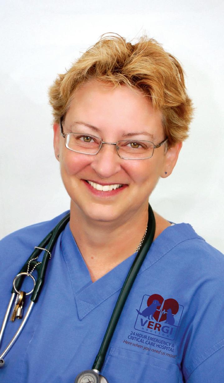 childhood passion and after graduating from Houston Baptist (now Christian) University with bachelors degrees in both theology and psychology, she attended veterinary school at — where else — Texas A&M School of Veterinary Medicine, graduating in 1994. After achieving her doctorate, she went on to do an internship and residency in internal medicine at the University of Pennsylvania School of Veterinary Medicine. Prior to her career in animal medicine, she served for nine years with the Houston Police Department, receiving various promotions and commendations, but her heart led her back to caring for critters.