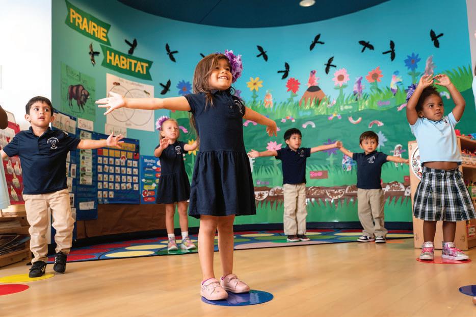 personalized attention every child receives. Certified teachers work in small groups, meeting each student exactly where they are developmentally. Children move through intentionally designed learning centers: dramatic play, STEM, art, and science, experiencing both teacher-led instruction and handson projects. And the outdoor spaces aren't just playgrounds; they're an extension of the classrooms where children build physical skills, explore nature, and learn through active engagement.