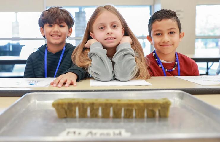 MaggieMae Kennedy, Assistant Director of Student Nutrition Services (SNS) in SBISD, and Dietitian Liz Lofgren adapted lessons for the 80-plus students. Their goal is to raise awareness about food production while providing a hands-on learning experience. Following successful pilot programs at the SNS office and Frostwood Elementary (FWE), the SNS team plans to expand the program to other SBISD schools, using curriculum suitable for all grade levels.