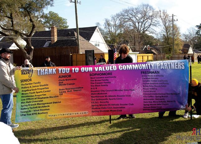 On February 18th, the second annual — and very successful — Spring Branch Color Run left its powdery, colorful mark on the participants as over 300 community members ran, walked, danced, and lobbed cornstarch-laden “color bombs” at their friends and teachers. Rebecca Barbier, Color Run chair and a current Spring Woods High School parent, had the idea for the event last year when she realized that both Spring Woods and Northbrook high schools simply didn’t have the resources to give their seniors the end-of-year sendoff through prom. “I grew up in Spring Branch, my kids go to school in Spring Branch, my husband teaches in Spring Branch. This was all inspired by us saying, hey, we can handle ourselves. We love our community. We want our kids to know that we love them. We want them to do well in school, we want to be there for them. So, what better way to do that than to have an event that celebrates kids?” said Rebecca.