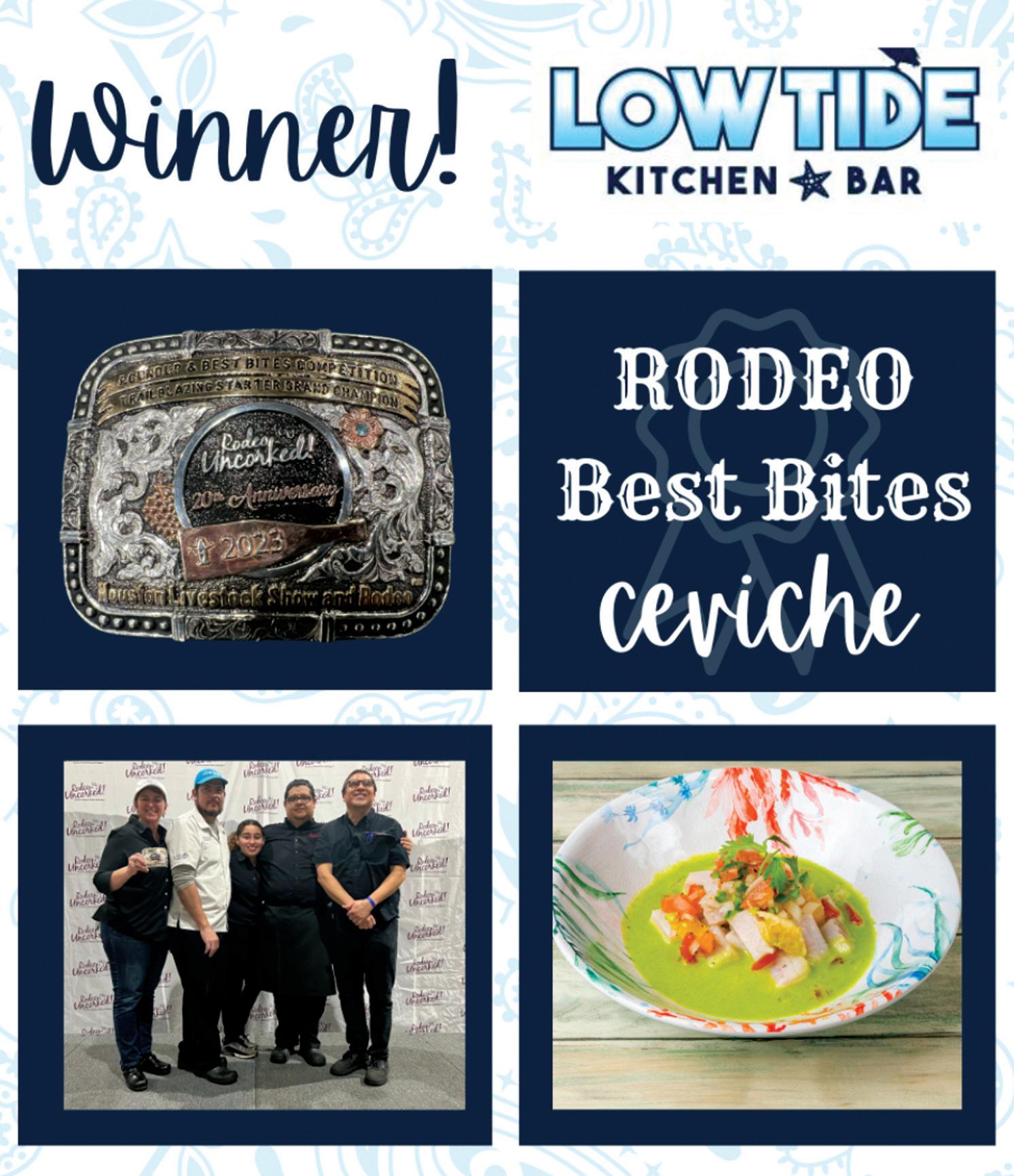 They entered, they competed … and they won! Spring Branch’s very own Low Tide Kitchen & Bar participated in the Houston Livestock Show and Rodeo’s Uncorked! Roundup and Best Bites competition on February 19th, entering their ceviche in the Trailblazing Starter Competition. Impressing the judges with the dish’s fresh white fish, cucumber, onion, cilantro, citrus, and tomato served over crispy corn tortillas, owner Alli Jarrett and her team dominated the category and took home the coveted Trailblazing Starter Grand Champion winner’s buckle.