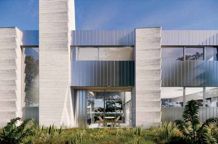 Printing began back in September 2022 in Spring Branch on the country’s first-ever multistory 3D printed structure. This two-years-inthe-making project is a major collaboration by HANNAH, an experimental design and research studio working across scales from furniture to urbanism; PERI 3D Construction, a firm that aims to revolutionize construction with 3D printing technology; CIVE, an upscale design-build firm specializing in top-down building processes driven by value engineering; architectural designers and assistant professors from the College of Architecture, Art, and Planning at Cornell University; and other building industry partners.