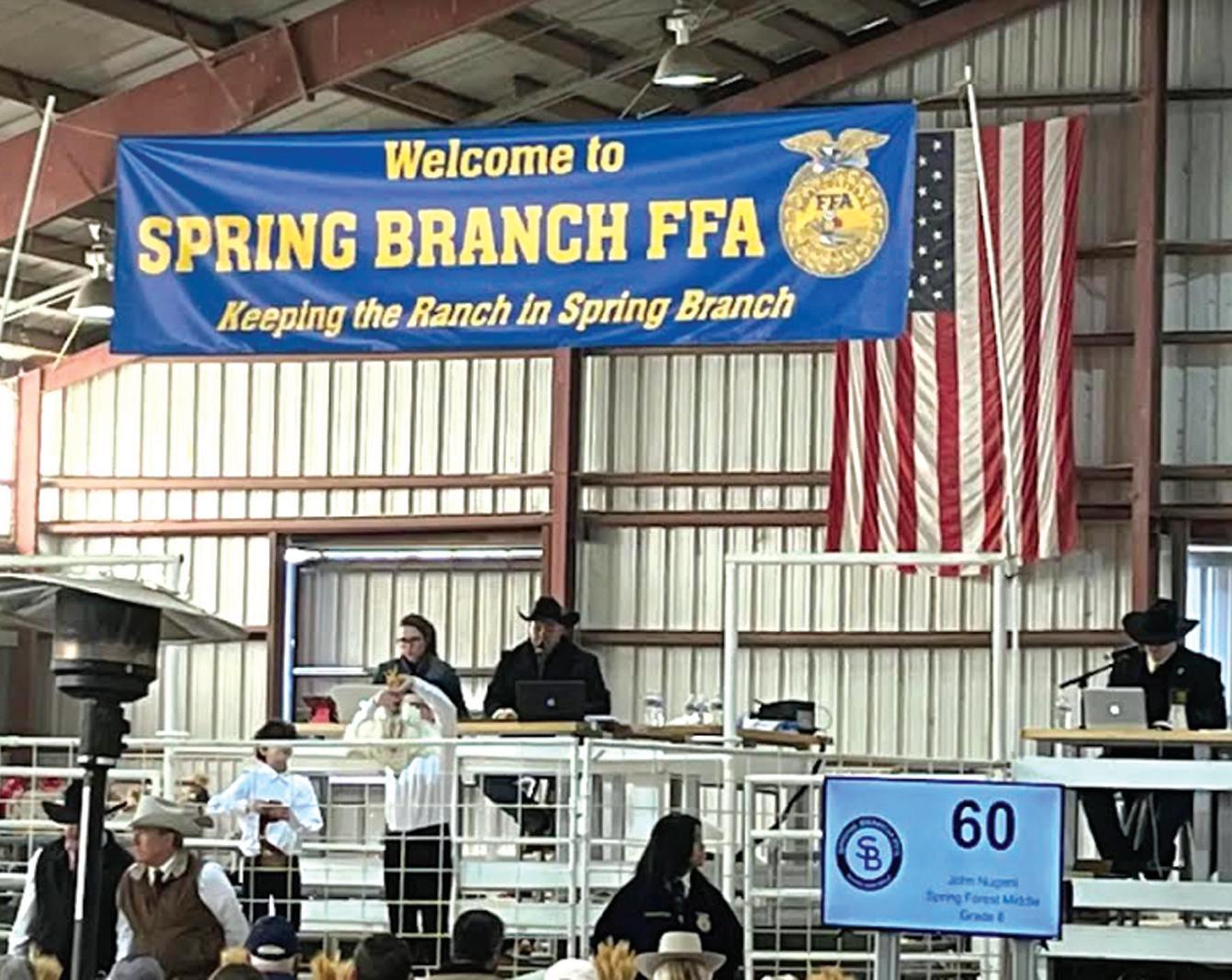 SpRing BRAncH iSD’S FuTuRe FARmeRS oF AmeRicA (FFA) HelD iTS 45TH AnnuAl SHow AnD SAle on FeB. 9-11, wHicH yielDeD moRe THAn $330,000 in Revenue FoR STuDenTS. SponSoReD By THe SpRing BRAncH FFA Alumni ASSociATion, THe THRee-DAy evenT BRingS STuDenTS THe oppoRTuniTy To SHowcASe THeiR woRk To THe communiTy. THe FFA STuDenTS ARe pART oF THe SpRing BRAncH iSD’S cAReeR AnD TecHnicAl