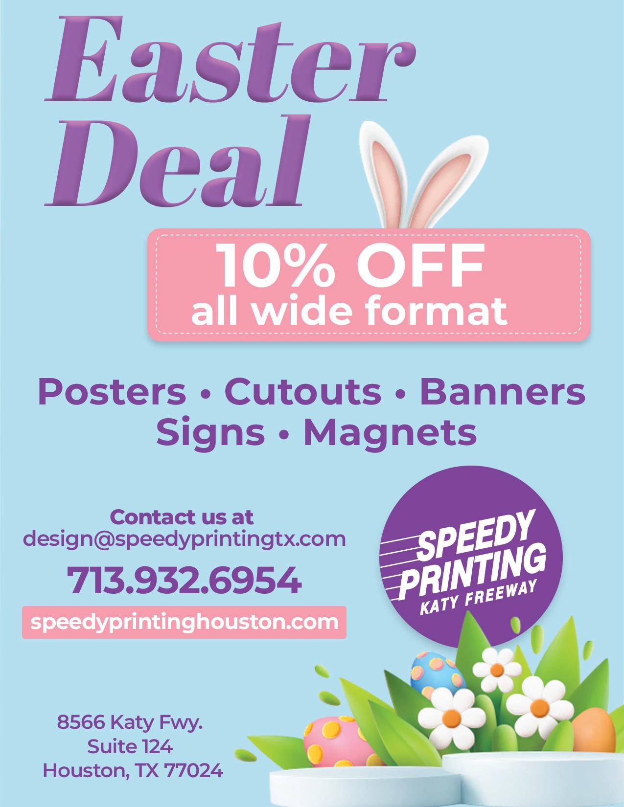 The saying is “April showers bring May flowers,” and as the spring sun shines brightly on our little corner of Houston, I’m hopeful that there will be enough rain to wash away the pollen and water our flora. April is a busy month — it’s tax season (yuck), crawfish season (yum), April Fool’s Day, Easter, and our SBISD students and administrators are winning awards and having garage sales and wrapping up theater season left and right. This month, we’re featuring a local interior designer who is passionate about helping her clients design their dream spaces — perfect if you’re looking for a spring refresh of your home. We also have Easter basket filler tips, where to get crawfish, and a round-up of summer day camp options in the Houston area. Happy spring!