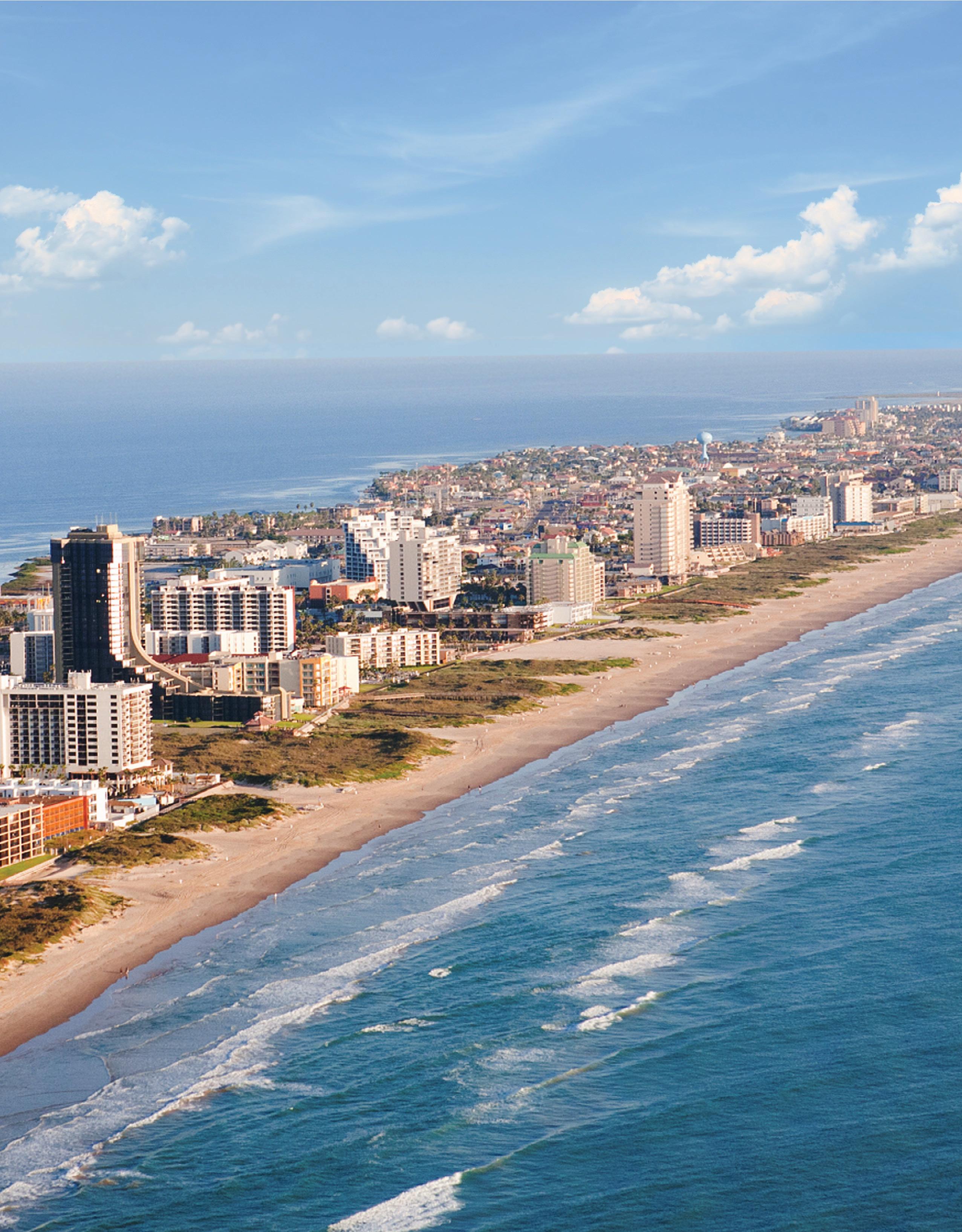 his 34 mile long stretch of white sand is bordered to the east by the Gulf of Mexico and to the west by the Laguna Madre bay. The conveniences and attractions of a modern resort coupled with miles of pristine island terrain is what draws thousands of visitors to the area each year, and has brought many back to live.