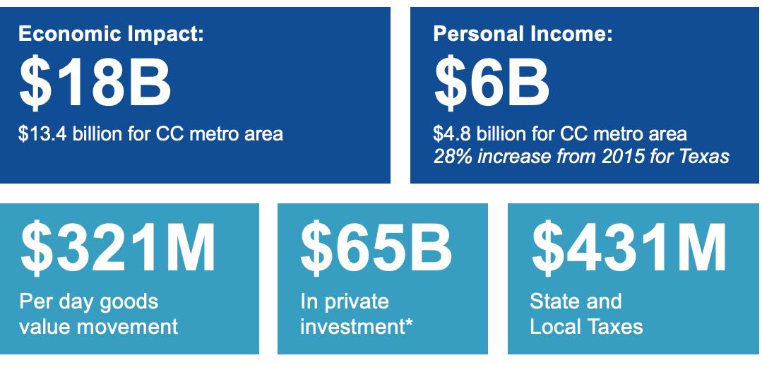 Supporting organizations include United Corpus Christi Chamber of Commerce, Coastal Bend Industry Association, Corpus Christi Regional Economic Development Corporation and San Patricio County Economic Development Corporation.