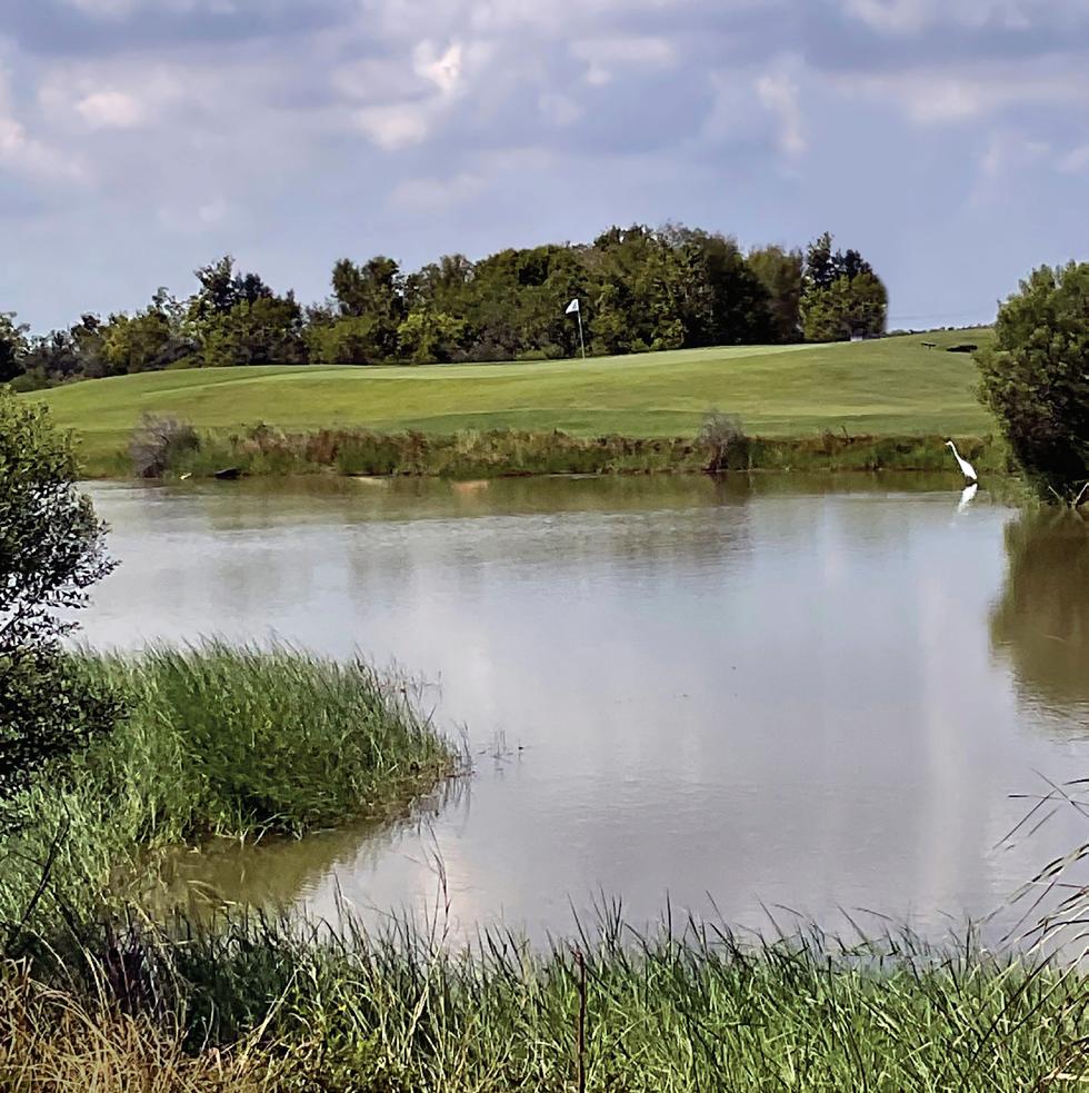 The 414-yard par 4 sixth is all about strategy, with a tee shot that’s played short of the bayou that begins 225 yards and then an approach to another windaffected, tiny green.