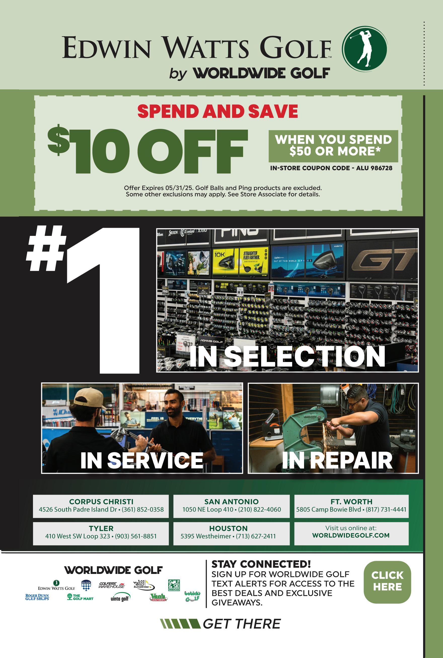 Edwin Watts | Map # 3 | Ad Page 32-33 5395 Westheimer, Houston, TX 77056 www.worldwidegolfshops.com | 713-627-2411