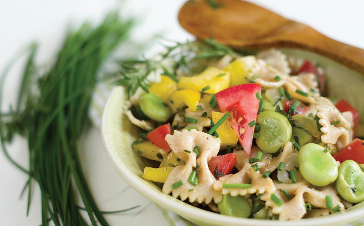 3. Once cool, drain again and toss in a large mixing bowl with the vegetables and chopped herbs.