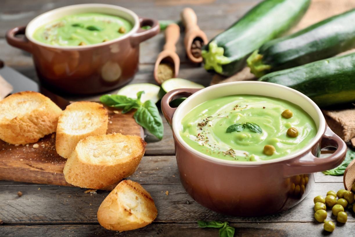 NOTE: There’s no need to peel since zucchini skin is so tender. You can peel but your soup will be white. Zucchini flowers are edible so if you have some, float one on top of each bowl of soup.