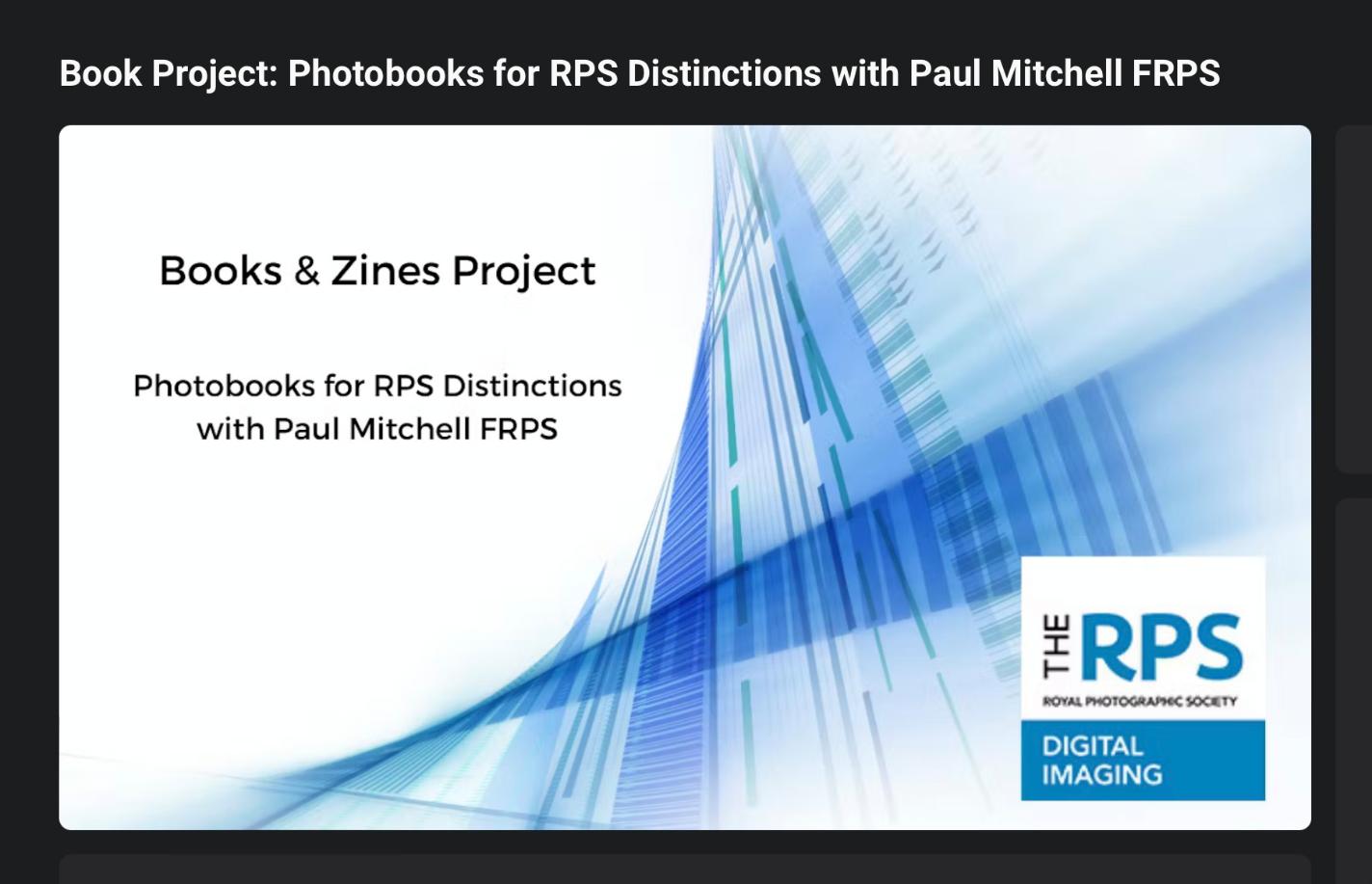 A chance to find out the criteria for an RPS PhotoBooks Distinction from Paul Mitchell FRPS who sits on the Distinctions panel for PhotoBooks. Saturday October 13 at 14:00