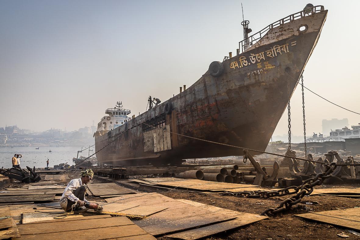 The images were taken at Keraniganj on the banks of the Buriganga river, Dhaka. Here ships are made seaworthy with recycled components and rebuilding. It is one of the largest propeller making areas.