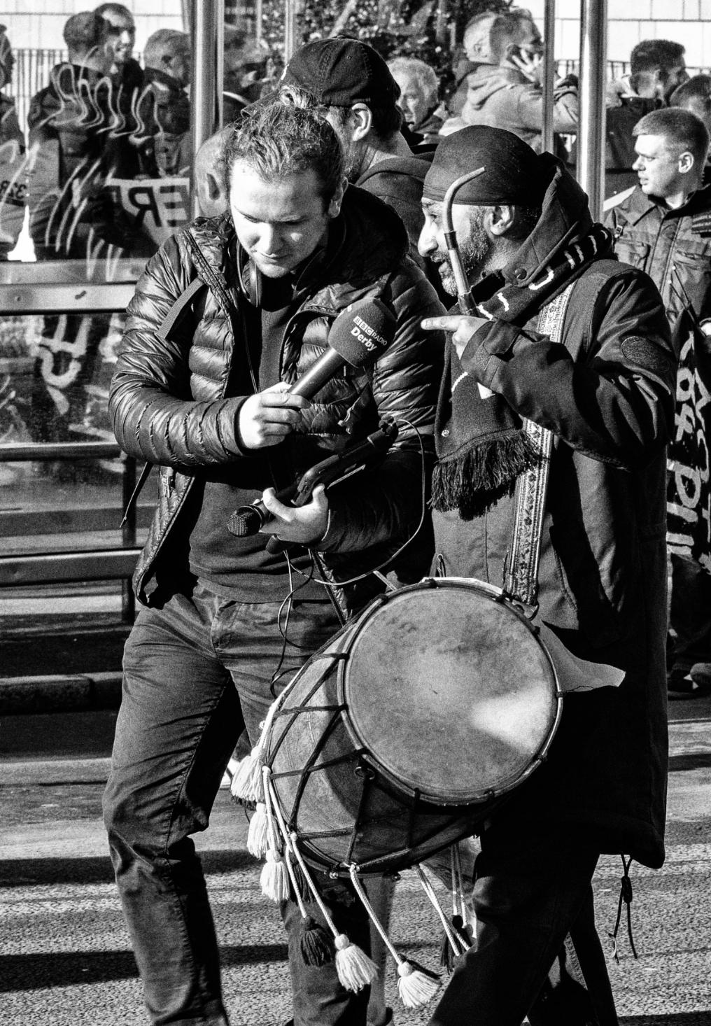 IdecidedtodocumentthemarchasitassembledintheMarketPlaceandsetoffonthemileorso routetothePrideParkStadium,wheretheRamswereduetoplayBirminghamCitythata�ernoon. Thoughgood-natured,thefeelingofdetermina�onandlovefortheRamsamongthesupporters,was palpable.