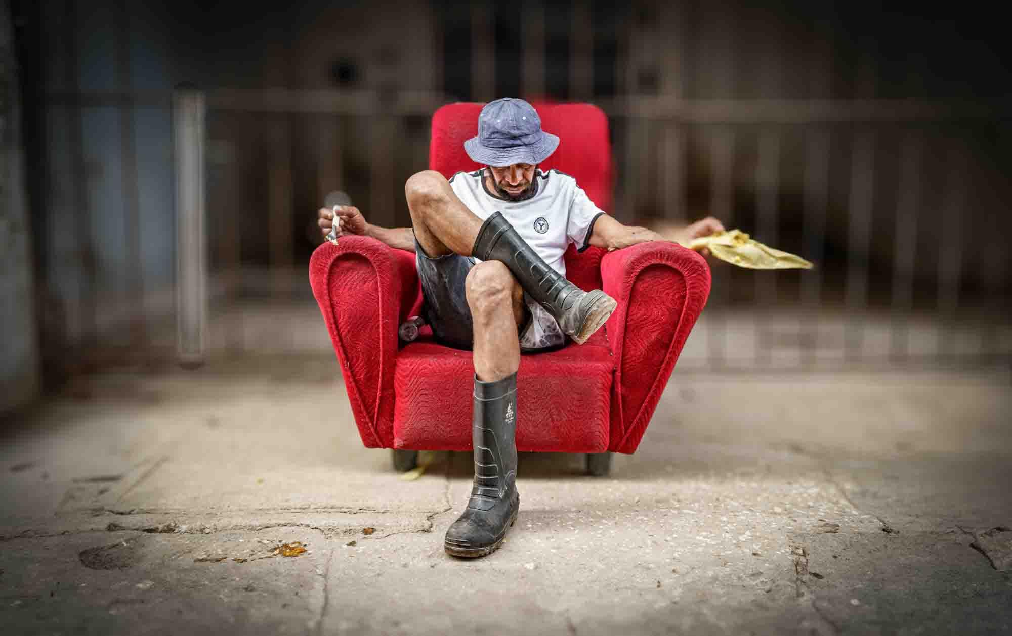 This was taken in Habana, Cuba, and sums up the colourful eccentricity of the city and its people. Settled into an armchair on the street, dozing over his lunch, wearing wellies - says it all!