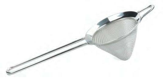 Double-fine mesh. 6-1/4" long handle. 18/8 stainless steel. Dishwasher safe.