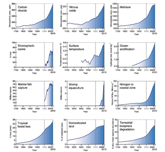 grondconversie zoetwateronttrekking vervuilingchemische stikstof-en forsforverzadiging deverzuringvan oceanen