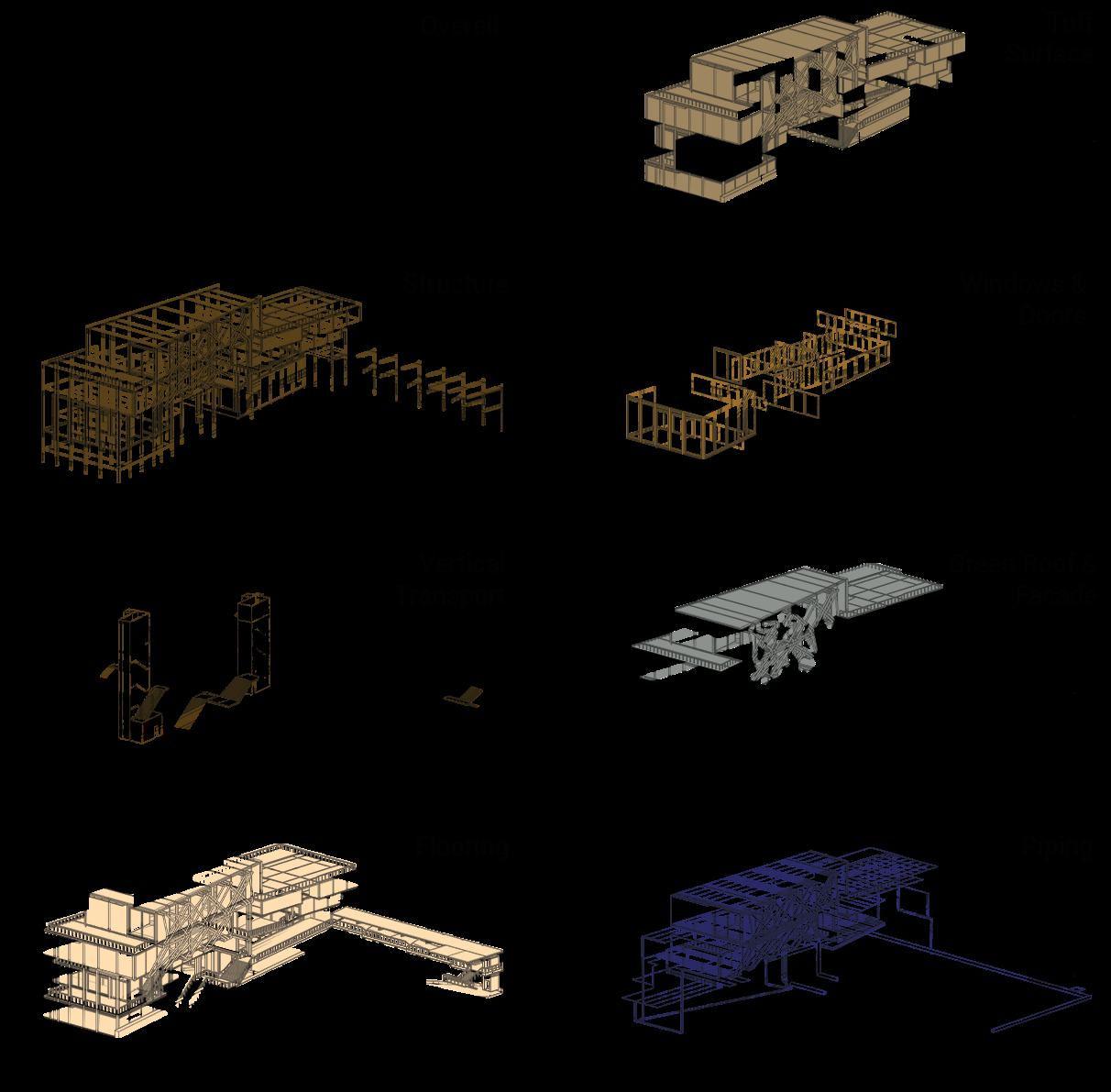 Pipes, integral to both utility and aesthetics, form a double-skin facade aided by vegetation to regulate water temperature as part of the facade’s thermal performance.