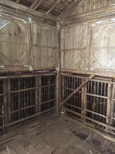 The bamboo panel is fabricated in the workshop, then transported to the site for installation on the villa's wall. Once installed, it undergoes testing by a mechanical engineer to evaluate its reliability as a thermal stabilizer.