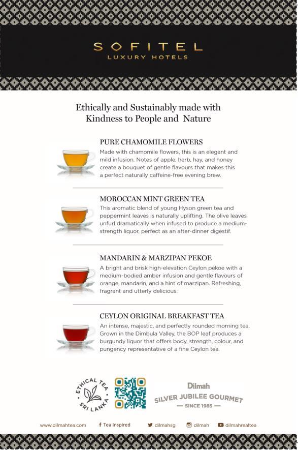Upon unboxing, guests will find two luxury Silver Jubilee Gourmet tin caddies, each containing 100g of loose-leaf tea (Ceylon Breakfast Tea; Ceylon Rose & Mint).