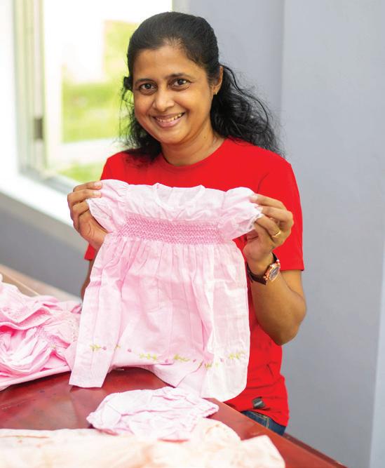 Niranjala and Nishanthi joined the WDP to learn simple sewing but soon discovered their creativity and talent for dressmaking. Today, their plushies can be found at hotels in the south of Sri Lanka and their intricate baby smocks are a favourite around Moratuwa town.