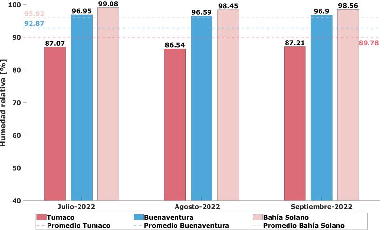 Las condiciones océano atmosféricas registradas en el Océano Pacífico Ecuatorial asociadas al evento La Niña se han mantenido, con un fortalecimiento de las condiciones frías en la parte oriental del Pacífico ecuatorial. Según las proyecciones de los centros internacionales de pronóstico, se espera que para octubre 2022 las condiciones de la Niña en el Océano Pacífico Ecuatorial se mantengan, sin embargo, se recomienda mantener el seguimiento al evento En la Cuenca Pacífica Colombiana se registraron magnitudes de las anomalías coherentes con la variabilidad climática; los valores medidos para la temperatura superficial del mar, el nivel del mar, la temperatura del aire y la precipitación acumulada, variables que sirven como insumo para el cálculo de Índice Multivariado de Tumaco, catalogaron las condiciones de septiembre 2022 en Frías Moderadas, dando como resultado para el trimestre de julio a septiembre un valor de 1.17.