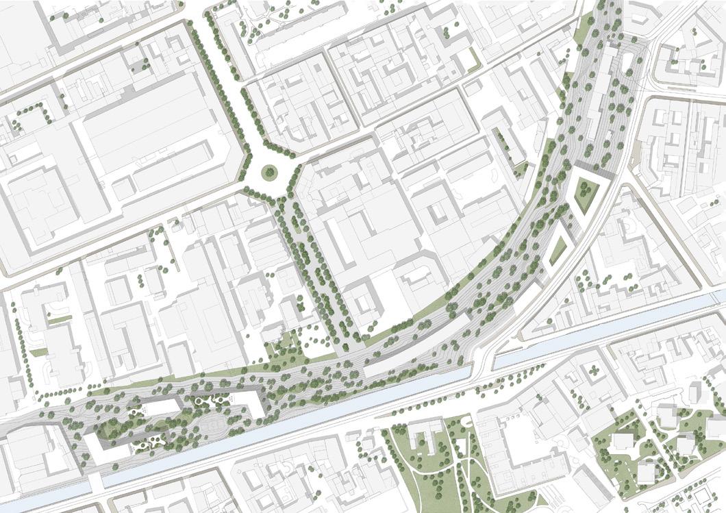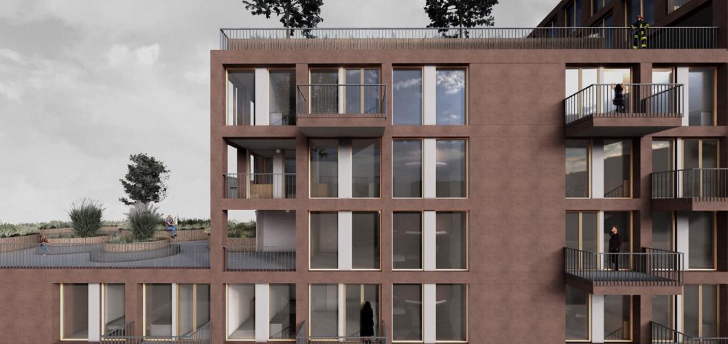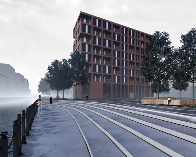 The housing buildings were planned to be located in 2 areas, the east zone (east side of Scalo) and the west zone which are located alongside the canal. Here, we went further with the west housing complex with a mass that allowed each of the buildings to have green terraces that could be used as communal space for the inhabitants.