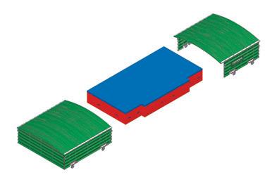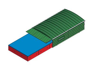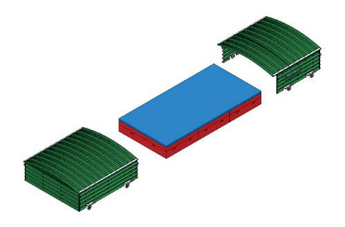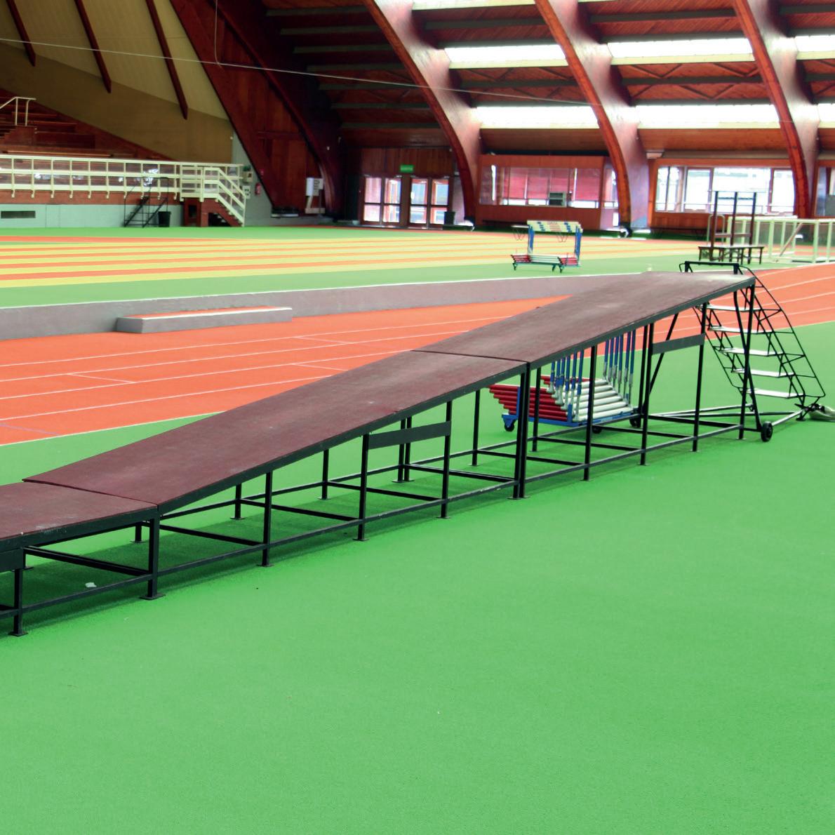 • Allows for easier assembly, moving, and storage (for pole vaulting landing systems, rapid moving of the blocks if the wind changes).
