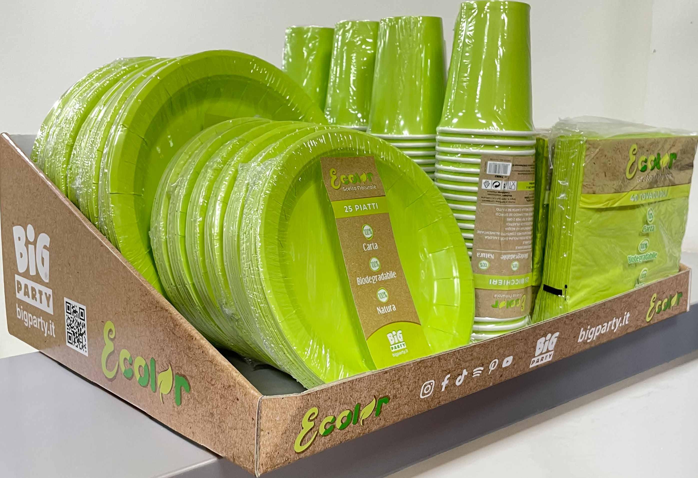 Con un’ampia scelta cromatica e un completa gamma di prodotti, Ecolor è pensato per l’uso quotidiano, il party e il mondo Ho.Re.Ca. accompagnando famiglie e professionisti verso soluzioni monouso più responsabili.