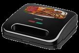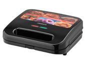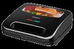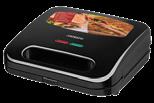 Auto shut-off after 60 min; display with heating temperature indication; heats up to 100 °C in 50 s; lock in closed position; wave height adjustment Dimensions (w × h × d),