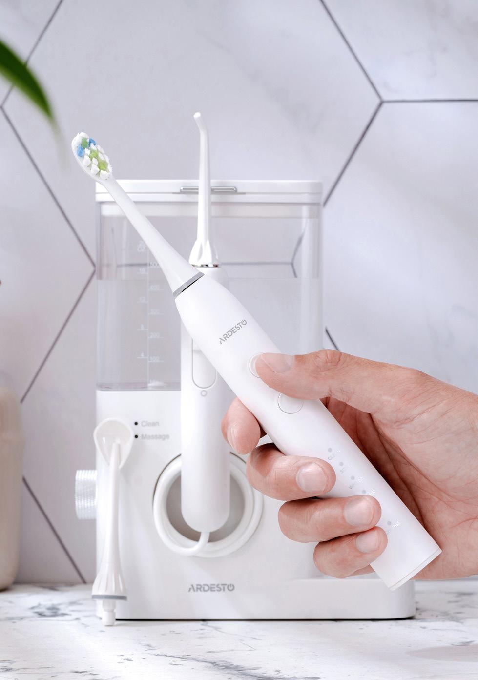 Set includes 5 interchangeable heads; docking station with standard plug; storage and transportation case 4 interchangeable heads; docking station with standard plug and mouthwash glass; storage and transportation case