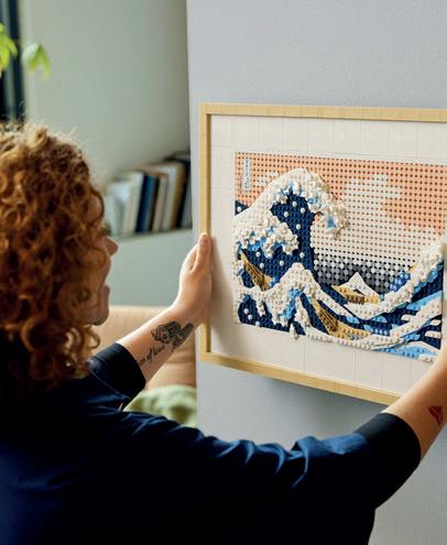 Одна з найвідоміших гравюр світу – «Велика хвиля біля Канагави» Кацусіки Хокусая – оживає у форматі LEGO. Із понад 1 800 деталей постає багатошарова композиція з виразним 3D-ефектом: хвиля немов розливається за раму, створюючи відчуття руху й сили природи.