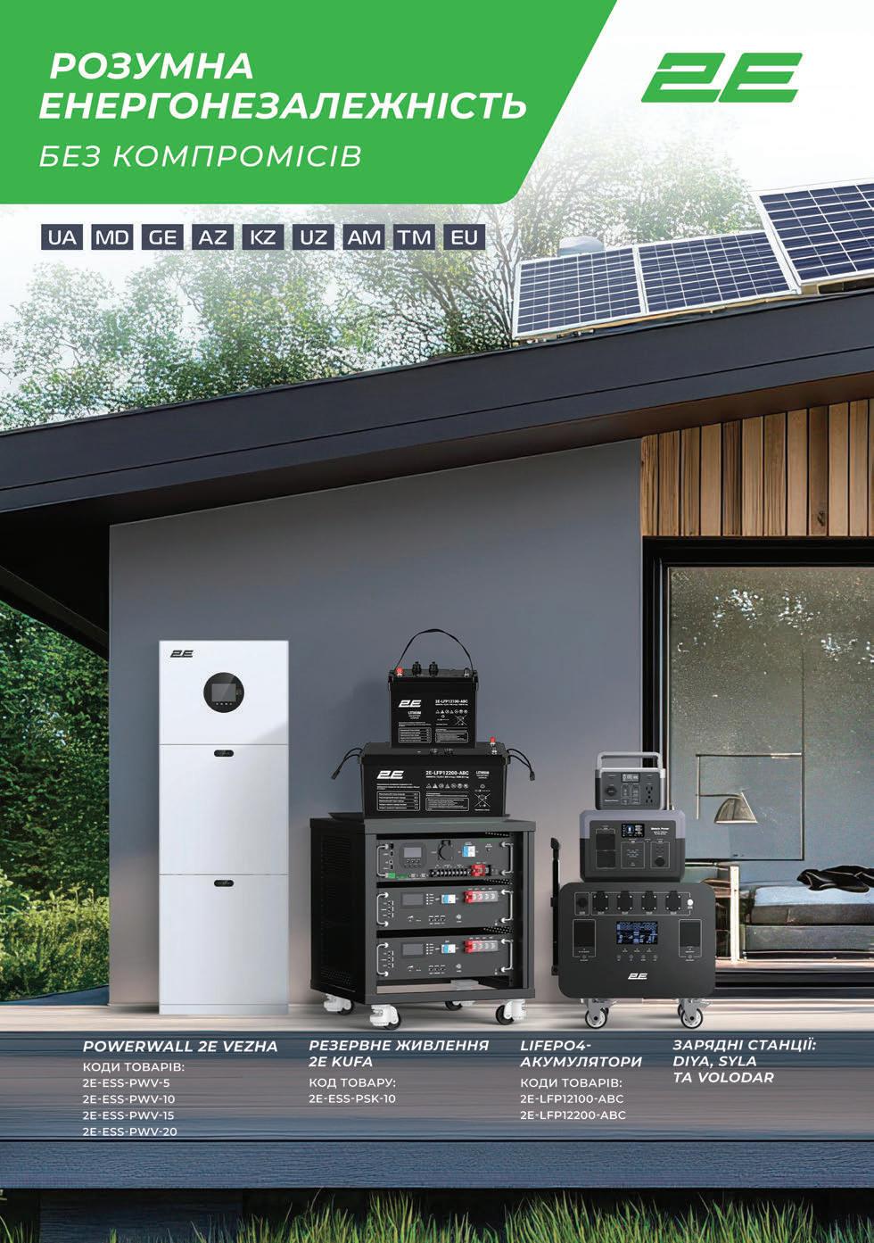 ЕНЕРГЕТИКА МАЙБУТНЬОГО В КОМПАКТНОМУ ФОРМАТІ Флагманська система резервного живлення 2E DIZHA із сучасним гібридним інвертором 10 000 Вт.