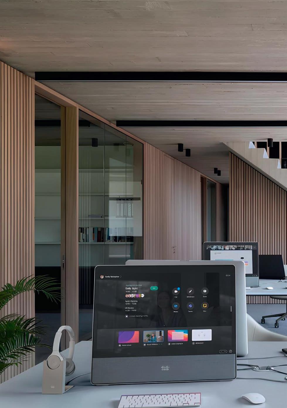 ВИЩИЙ РІВЕНЬ ВІДЕОКОНФЕРЕНЦІЙ Новочасні пристрої Cisco для онлайнзустрічей та інтеграції в екосистему Webex, Microsoft Teams, Zoom і Google Meet.