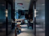 Columna de estructura metalica con revestimiento de placas de latón pulido de gran formato