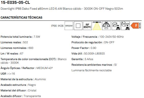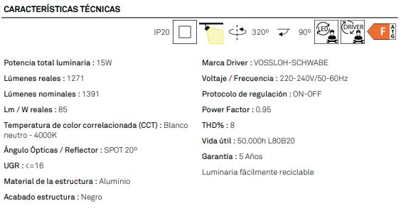 CURSO EST RAT EGIAS DE ILUMINACIÓN COMERCIAL DOCEN T E ARQ. CLAUDIA MARIA DELGADO ESCALA 1:100 FECHA 11/ 10/22 PROYECTO LAMINA A19 ALUMNA DINA SAMAN T HA DE LA CRUZ CAMAC DISEÑO DE ILUMINACIÓN T IENDA RE TAIL DESIGUAL 19 FICHAS TÉCNICAS T iend a De s ig u a l ®