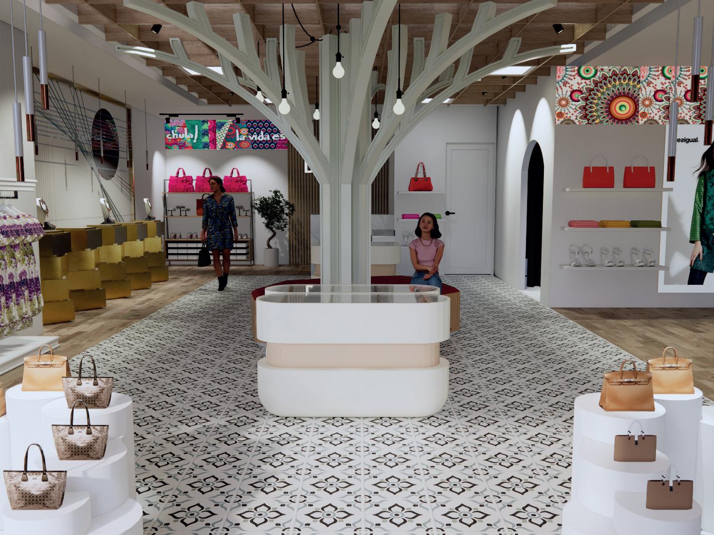 Se busca crear un ambiente donde el color blanco y el estilo mediterráneo sean los protagonistas del nuevo estilo visual del espacio, que pretende crear un ambiente minimalista que destaque las prendas y artículos que ofrece la marca con diferentes efectos de iluminación con luz calida para areas de exhibición y luz neutra para almacén y caja, contando con una retroiluminación en mobiliarios.