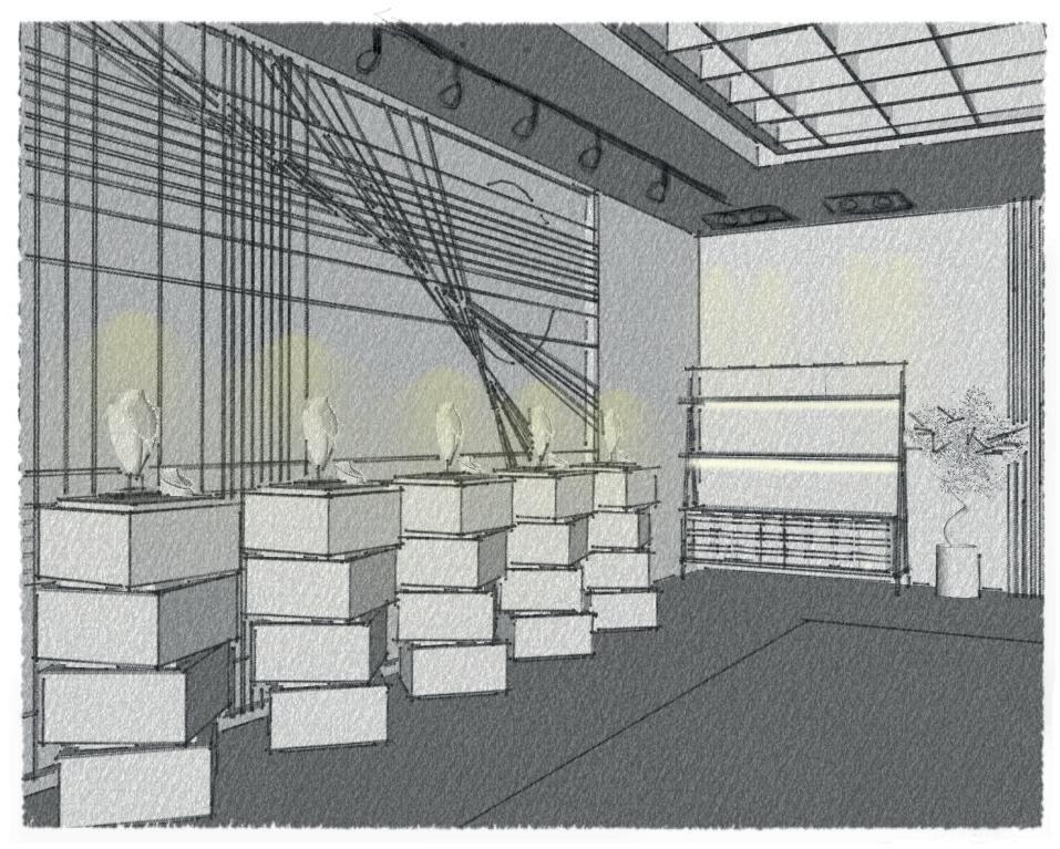 ESCAPARATE ÁREA DE EXHIBICIÓN CORREDOR ALMACÉN