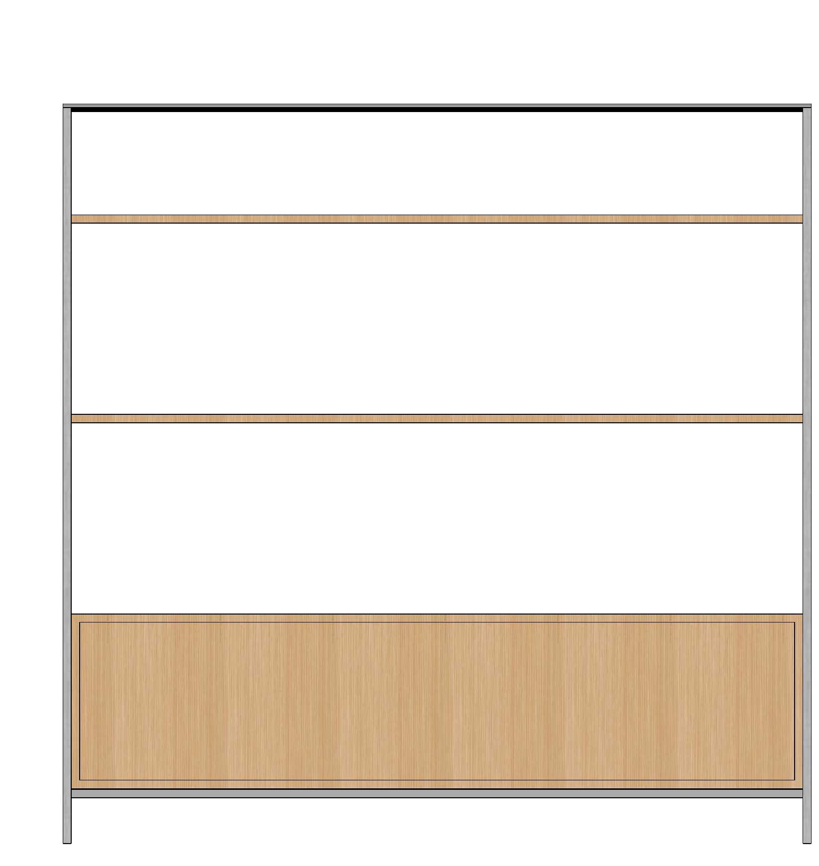Se busca un diseño contemporaneo que refleje autenticidad y a su vez sea armónico, con tonos calidos y neutros y lineas simples resaltando la materialidad de la estanteria en madera y metal y el diseño de piso que busque un dinamísmo espacial.