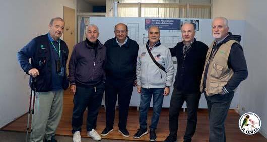 Al centro, il Presidente FOI (A. Sposito), il Segretario (G. Nunziata) e il Consigliere (G. Iannuccilli) con il Presidente AOVO I. Mascarin (a destra), il referente del Palaexpomar R. Furlanis e L. Maronese (a sinistra)