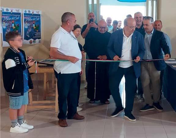 Il Presidente FOI A. Sposito con il Presidente AOPBF G. Castaldo sul palco della mostra di Pontecorvo